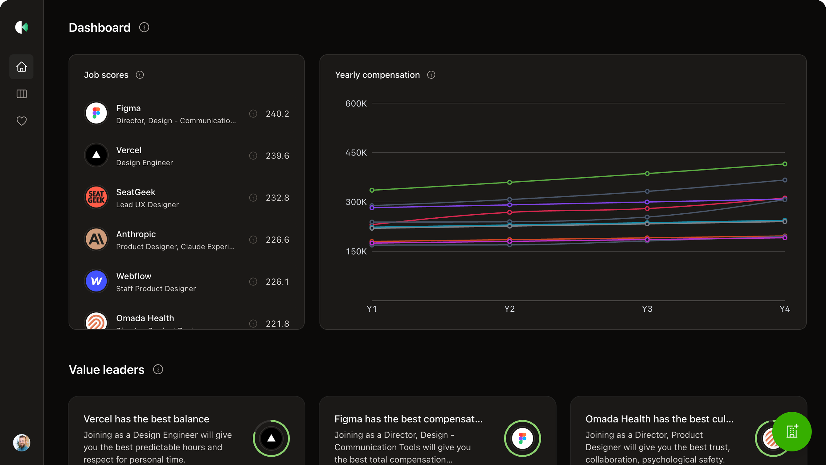 - Yes. You decide what matters most to you — compensation, work/life balance, joy at work, prestige, and more — and we instantly re‑rank your options.