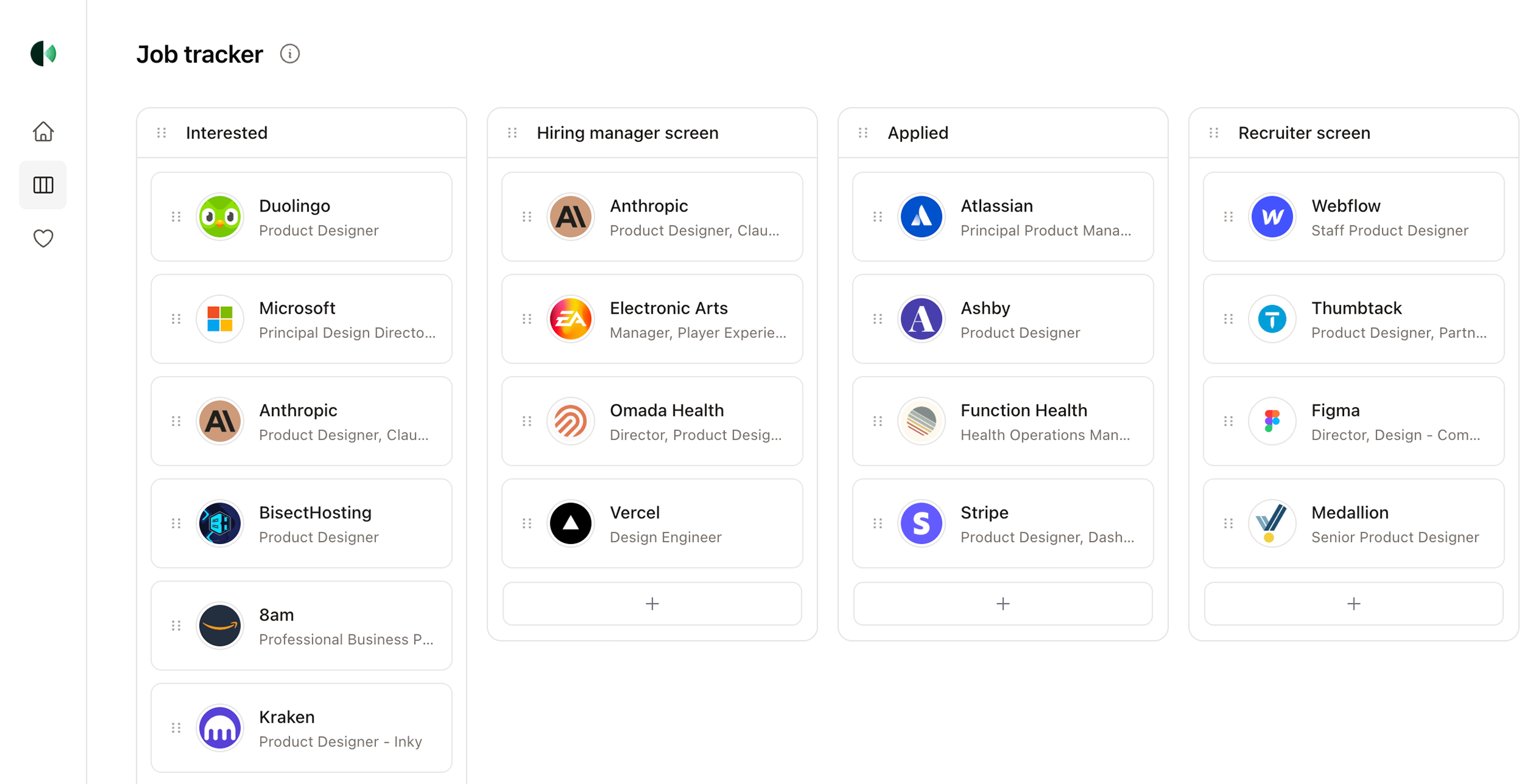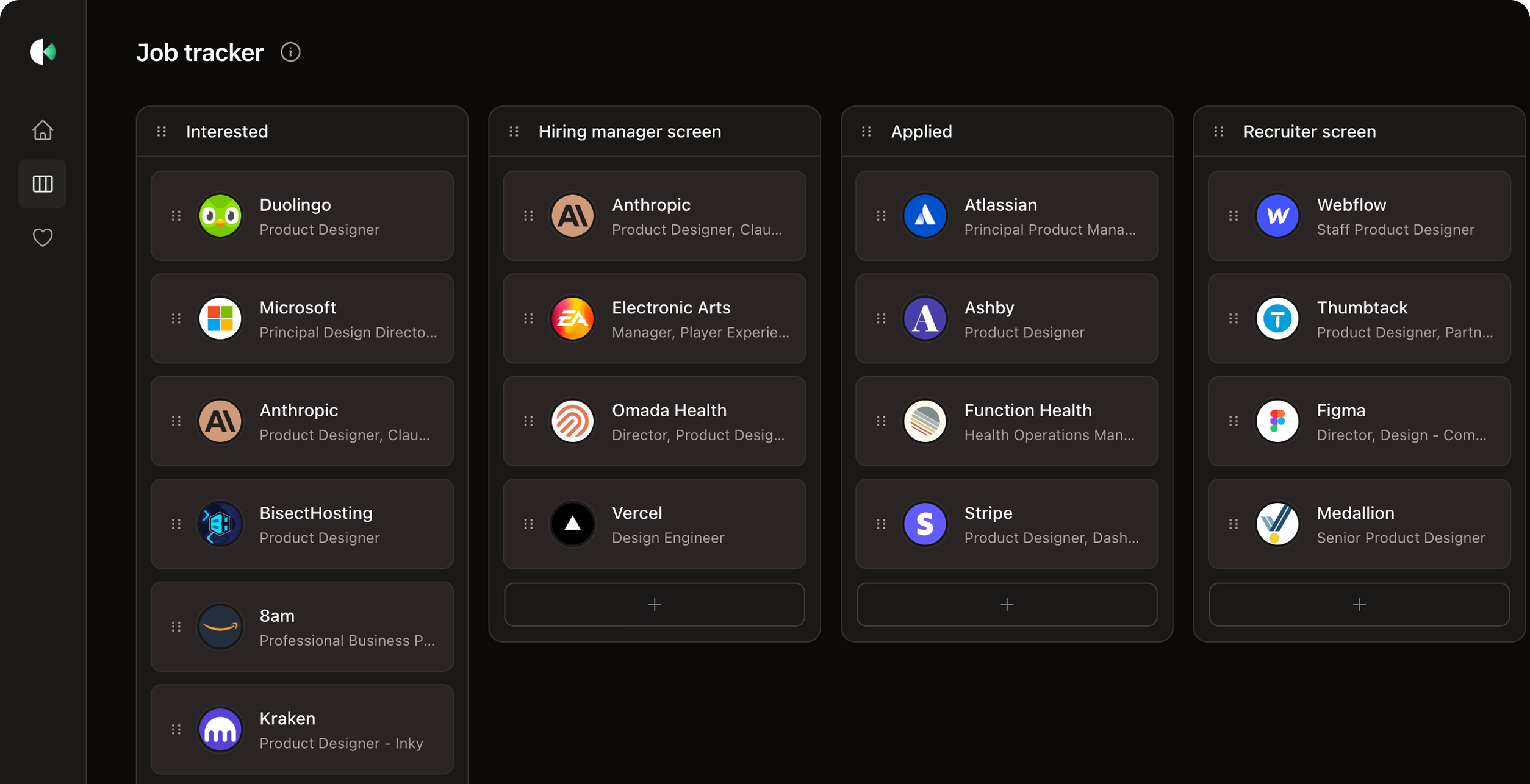 Keeping track of all the jobs you're interested in can be overwhelming. Compin makes it easy. Just drag your jobs into new status columns as your opportunities are progressing. Create custom columns for your own interview process, and have peace-of-mind knowing you won't lose track.