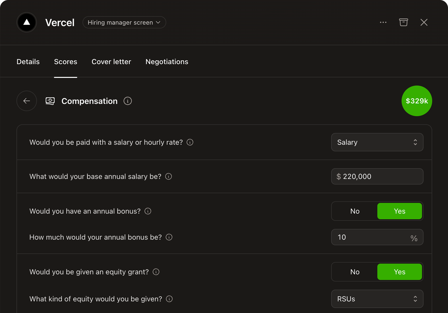 Take the guesswork out of how much you'll get paid. Compin uses a robust formula that can adapt based on your unique setup. Whether it's a salary with equity and a bonus or hourly with overtime, Compin makes it easy to see how the next four years will play out financially.